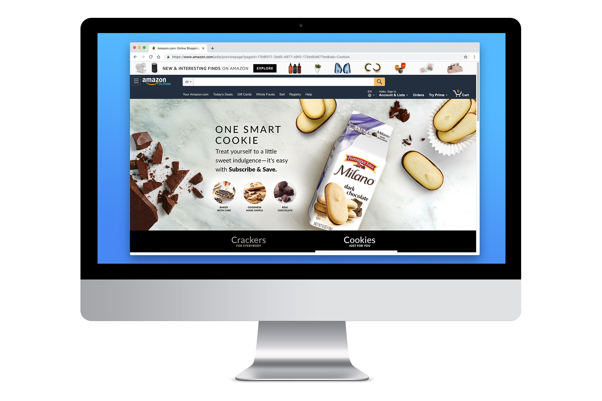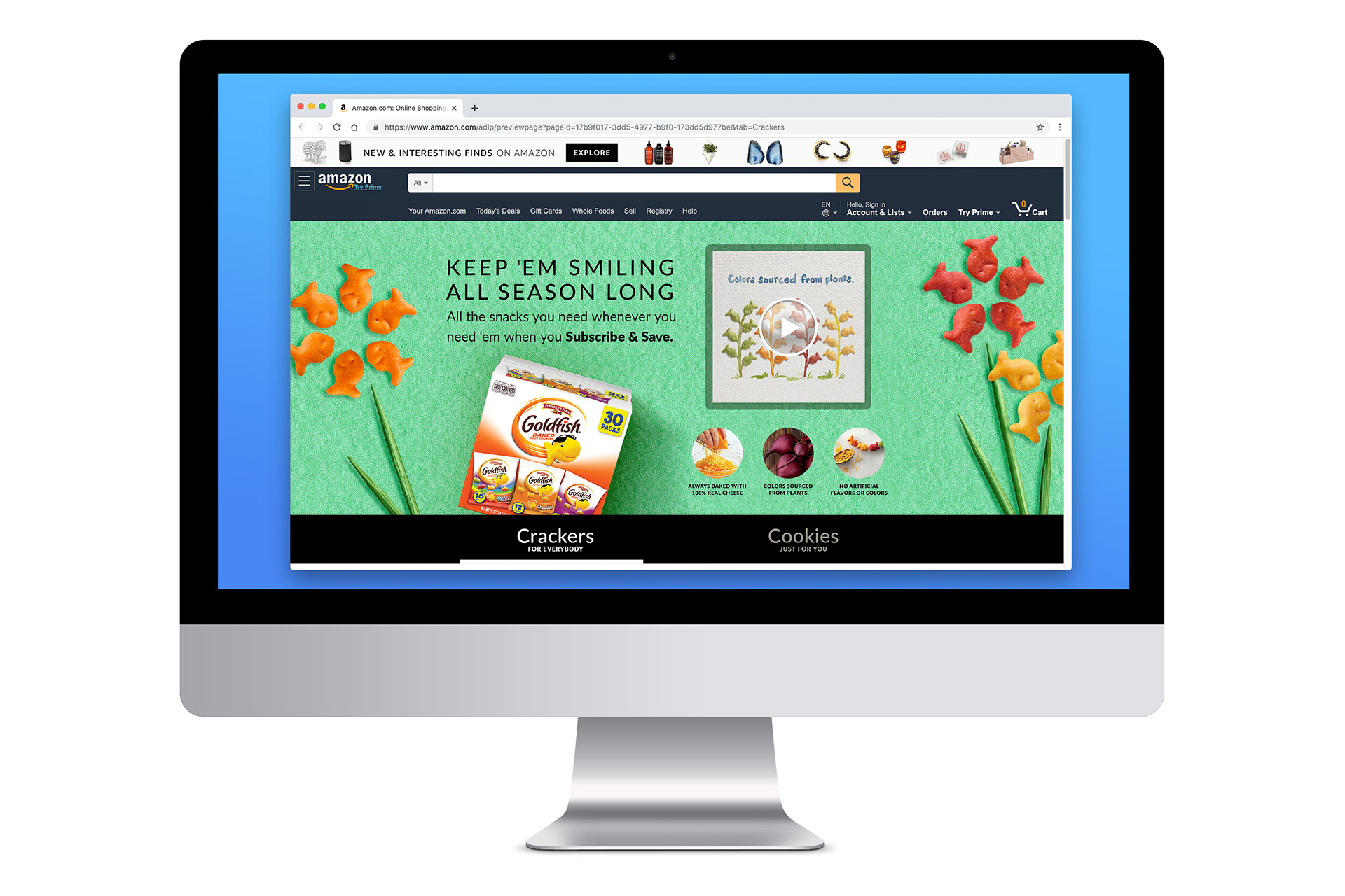 I led art direction and visuals on Amazon brand pages featuring Pepperidge Farm products, Goldfish crackers and Milano cookies and built accompanying web marketing assets and promotional material.